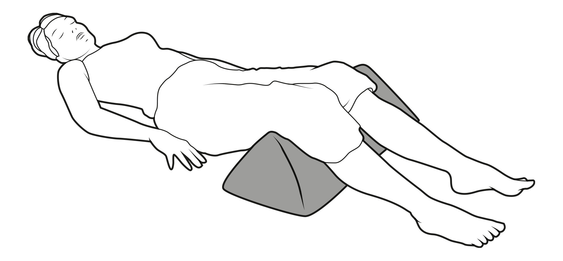 Placé sous les genoux, permet de réduire les tensions tendino musculaires au niveau lombaire et un relâchement de la sangle musculaire abdominale