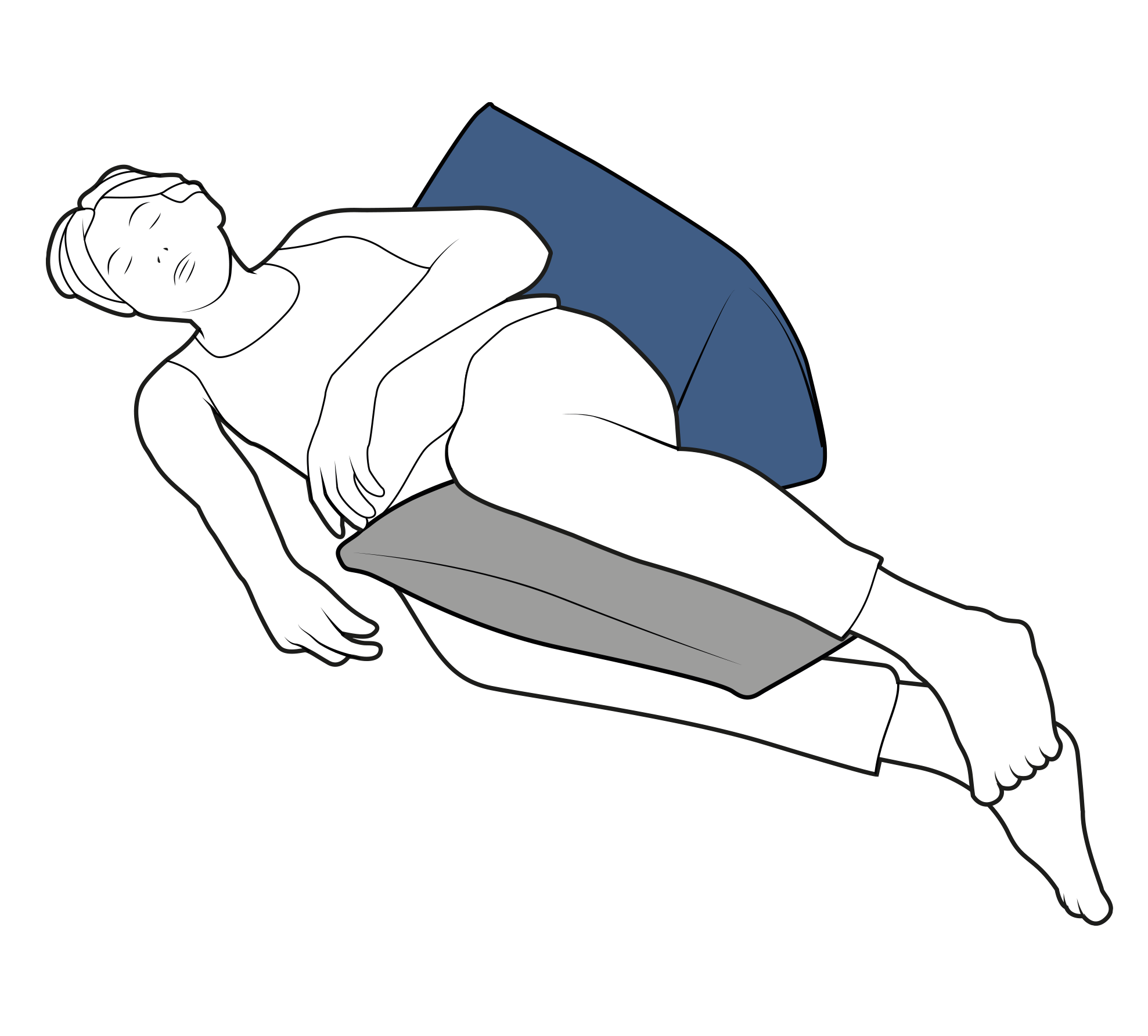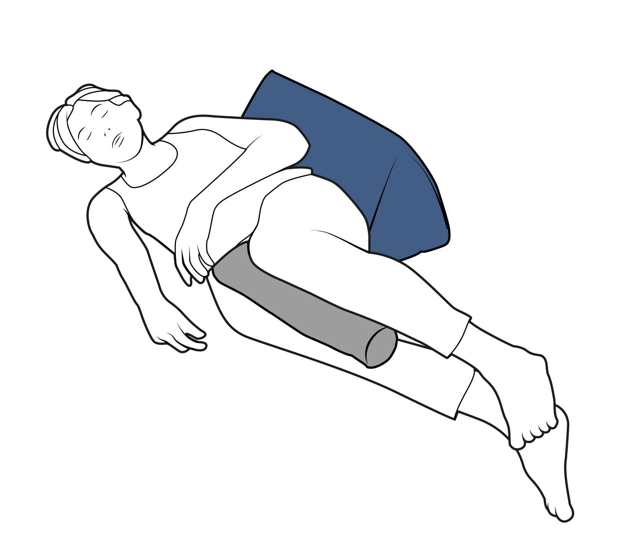 Placé le long du dos et associé à un coussin modulaire cylindrique N°07 ou N°03 placé(s) entre les genoux, permet un positionnement semi latéral 30° durable et une réduction des frictions au niveau des genoux et malléoles